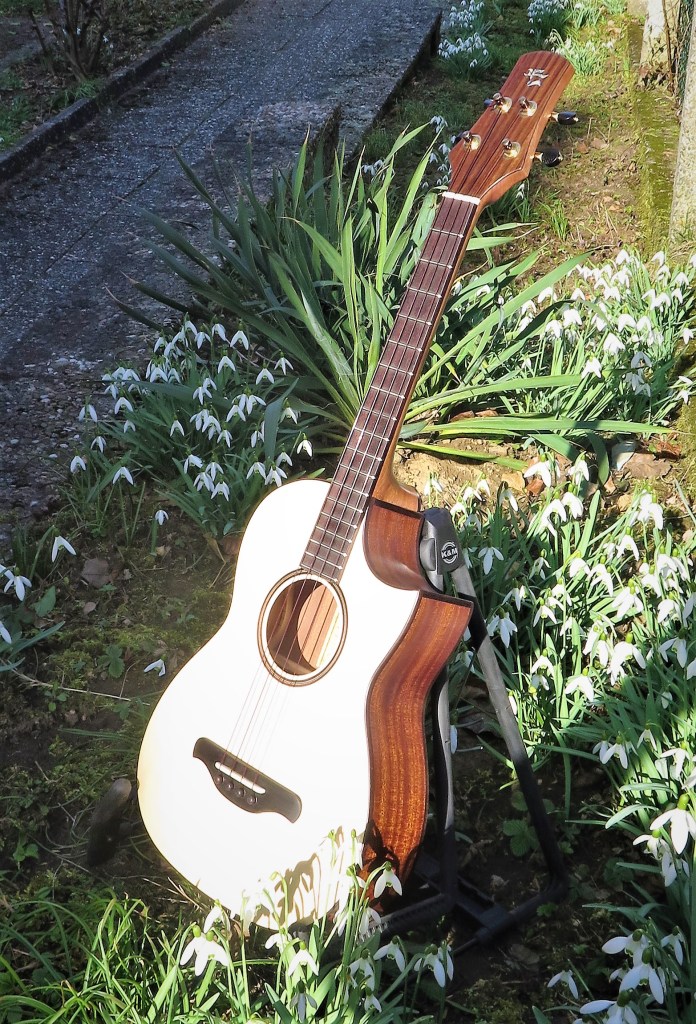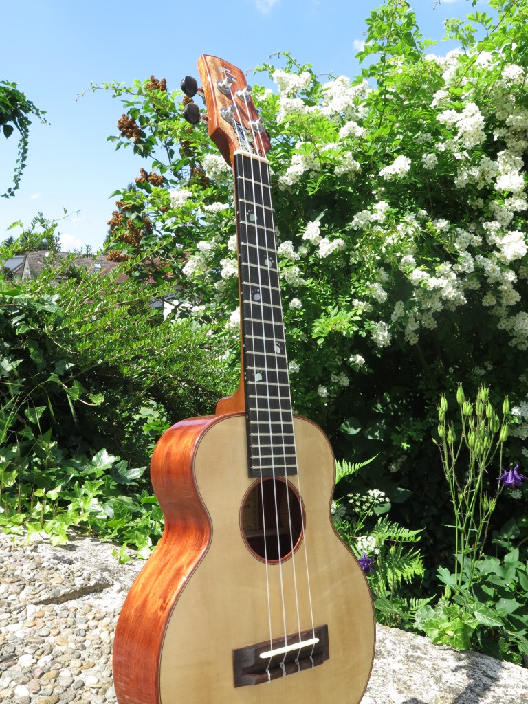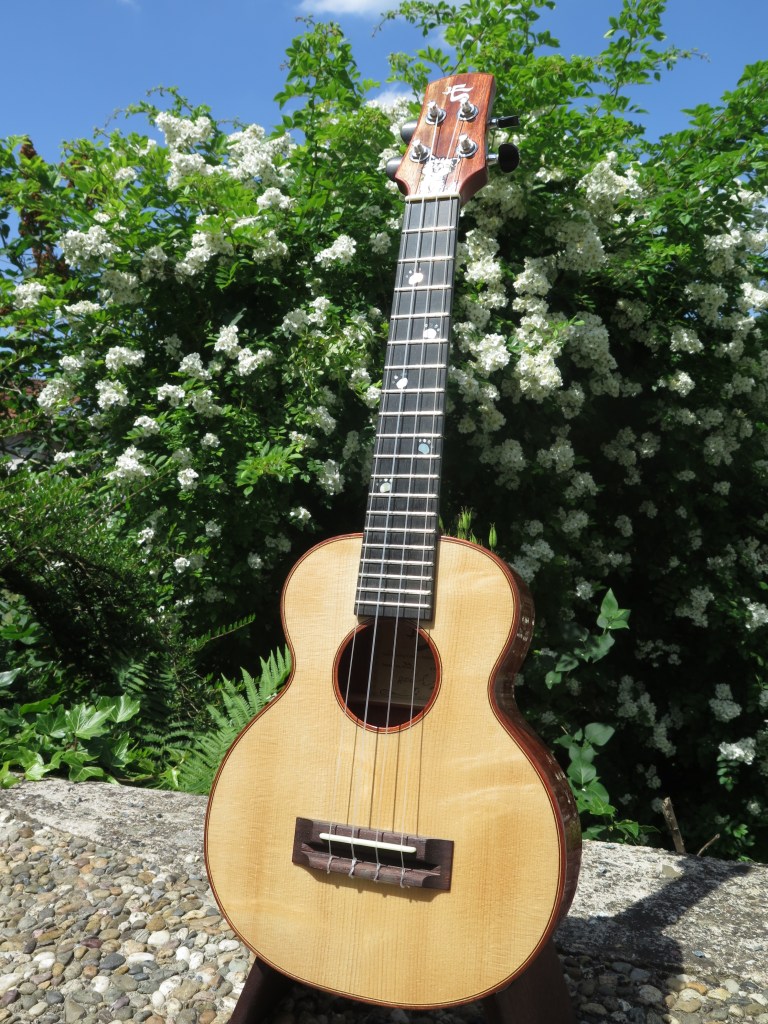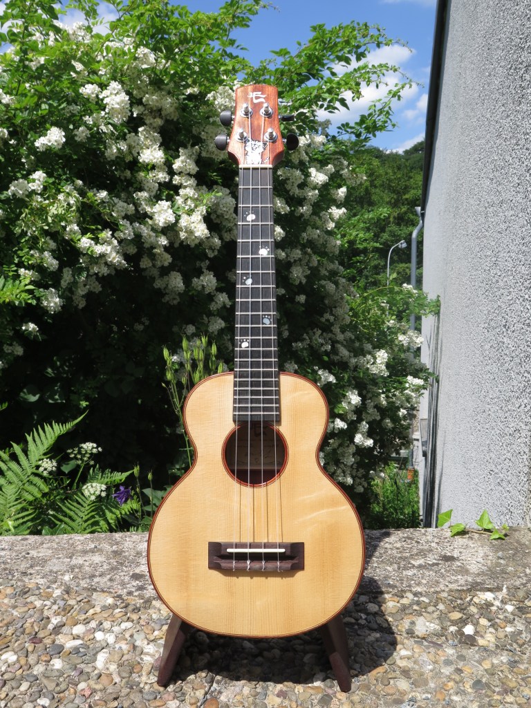 No. 33 Kats Uke Concert Ukulele Alpenfichte und Bubinga (2018) mit Perlmutteinlagen Kopfplatte und Griffbrett